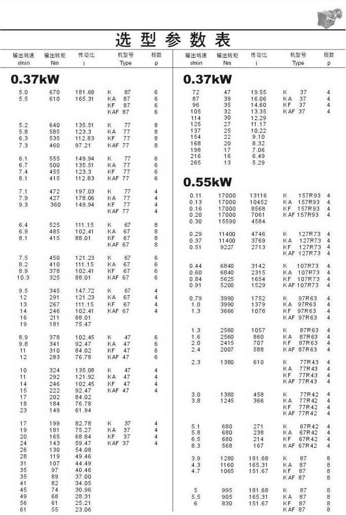 選型參數(shù)表0.37kW(續(xù)),0.55kW