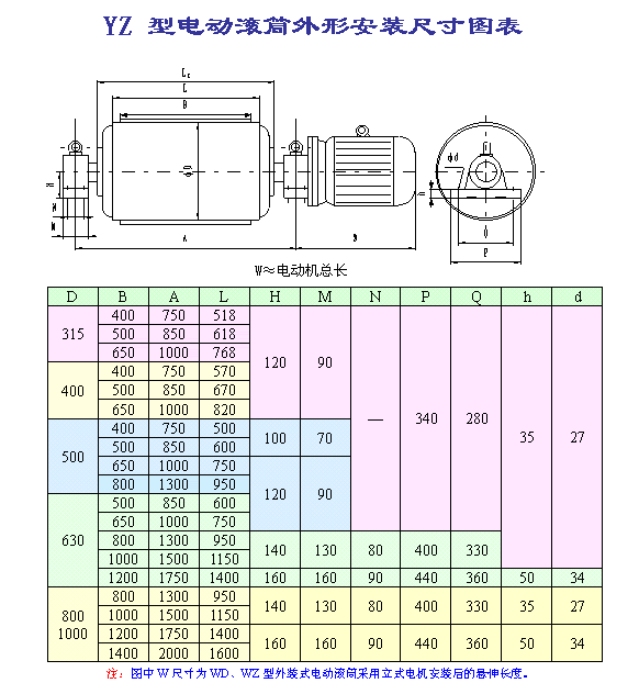 (1)因目前外裝式電動(dòng)滾筒尚未制定相關(guān)行業(yè)標(biāo)準(zhǔn),本廠將該型號電動(dòng)滾筒首位代號用W(“外裝”的首位漢語拼音)表示。外裝式電動(dòng)滾筒外置電機(jī)可分為立式電機(jī)和臥式電機(jī),用戶訂購時(shí)請加以說明;
